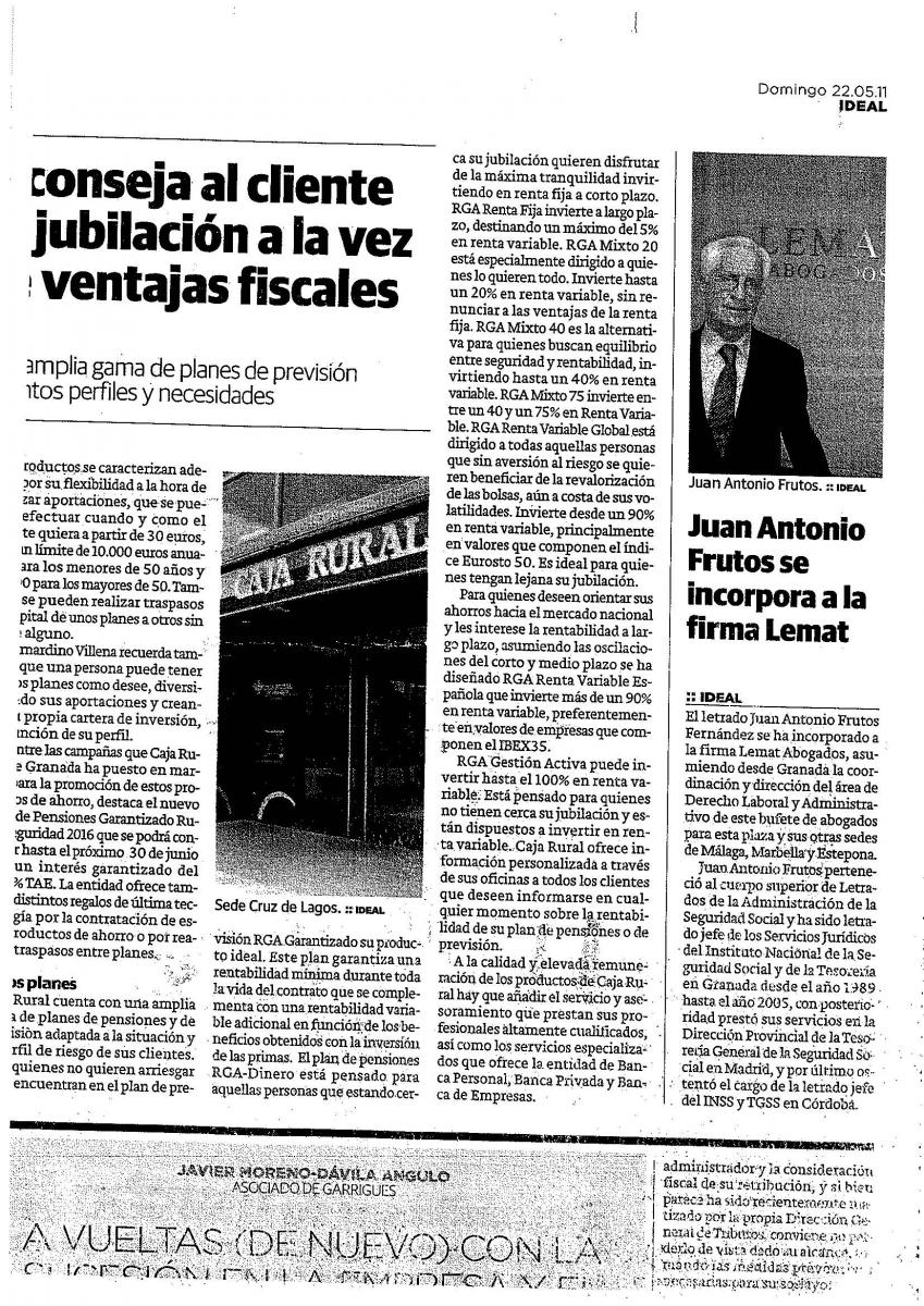 La firma LEMAT ABOGADOS copatrocinó junto con CAJA RURAL DE GRANADA el séptimo trofeo de golf BANCA PRIVADA celebrado los días 12 y 13 de noviembre de 2.011. En este sentido, D. Antonio José García Cabrera (uno de los socios directores) y D. Isaac Ruiz de Apodaca (Director del departamento de Derecho de Daños), fueron los encargados de entregar a los ganadores del torneo los diferentes premios consistentes en un trofeo y una estancia de fin de semana en hotel de lujo en la localidad de Marbella, con grin para ambos días. Dicho evento fué cubierto y publicado días más tarde en el diario IDEAL de Granada.